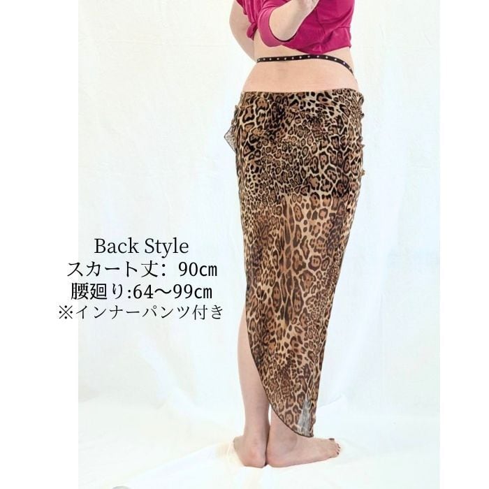 エレガントなレオパード柄が美しい、ロングタイプのヒップスカートです!インナーパンツ付きで安心して動くことができ、レッスンにぴったりです。ウエストベルトのラインストーンが華やかさをプラスし、視線を集めてくれます。お好みの位置にくくって御着用ください。