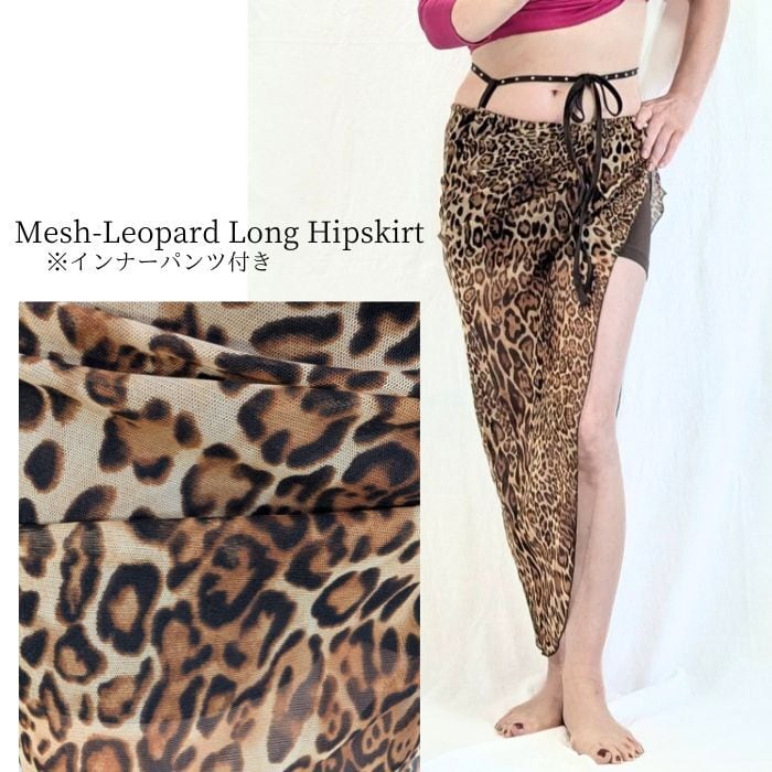 【4/3入荷】2105 compass1612626214 メッシュ レオパード 柄 ロングタイプ インナーパンツ付き ヒップスカート ヒップスカーフ