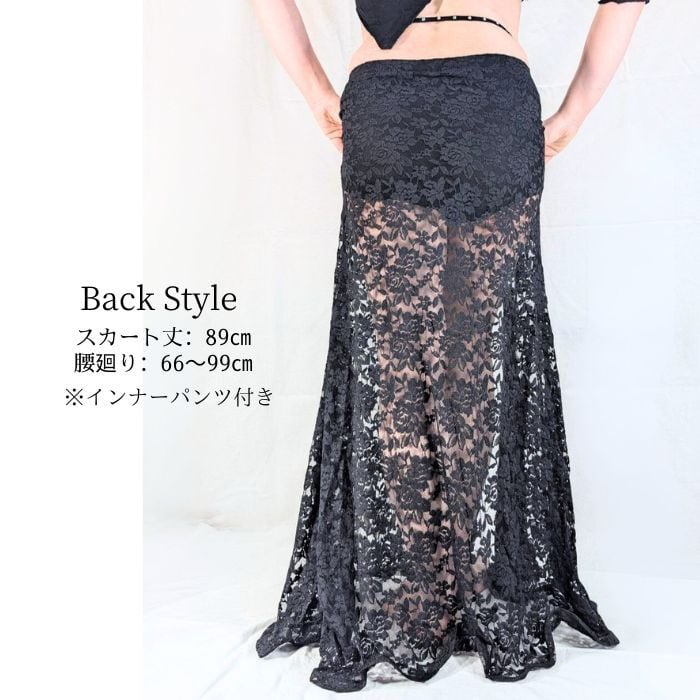 【1/12入荷しました】2605 ブラック レース ロング ヒップスカート インナーパンツ付き ヒップスカーフ