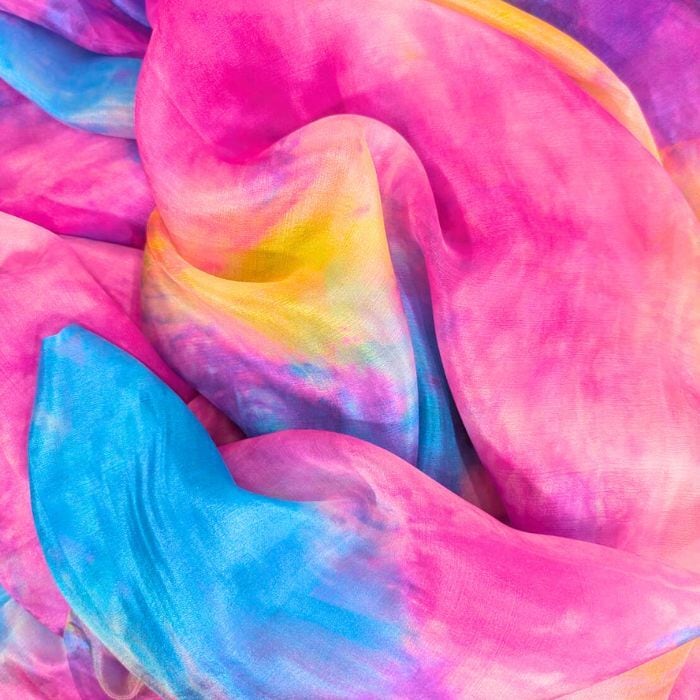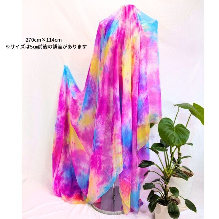 シルクベールの柔らかさが女性的で優雅なパフォーマンスを演出してくれます。また1枚1枚絞り染め加工しており、その鮮やかな色はそれぞれの個性を引き出してくれます。イベントや発表会の際にも、華やかさと存在感をもたらし、オリエンタルな雰囲気を醸し出します。