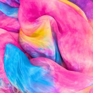 【270cm×114cm】艶々!ピンク イエロー ブルー 1942-p シルクベール 2.7m×1.14m ハフラ ベリーダンス 衣装 ダンス 華やか オリエンタル イベント ハフラ ベリーダンス衣装 ベール シルク 発表会 絹 絹100% シルク100%