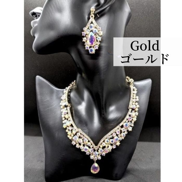 【4/6ゴールド、シルバー入荷】2151 2167 ラインストーン ネックレス ピアス セット ベリーダンス ハフラに